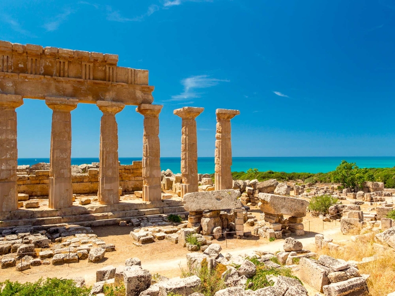 - Sur la route, faites une halte pour explorer le le Parc archéologique de Sélinonte, ancienne cité grecque qui détient un patrimoine historique exceptionnel. À son apogée, elle rayonnait par ses grandes influences commerciales et culturelles dans tout l'ouest sicilien. Les plus courageux la visiteront à pied, mais vous pourrez aussi opter pour une balade en voiture électrique privée ou en petit train. Préparez-vous à découvrir ses 7 temples !