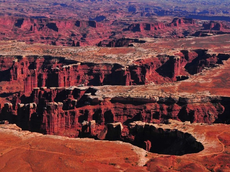 - Canyonlands National Park, plus sauvage et confidentiel, dévoile un labyrinthe de canyons vertigineux, de plateaux entaillés et de mesas monumentales, façonnés par les rivières Colorado et Green. Le secteur de Island in the Sky offre des panoramas vertigineux sur un enchevêtrement de gorges profondes, tandis que The Needles séduit les amateurs de randonnée par ses sentiers isolés et ses paysages grandioses.